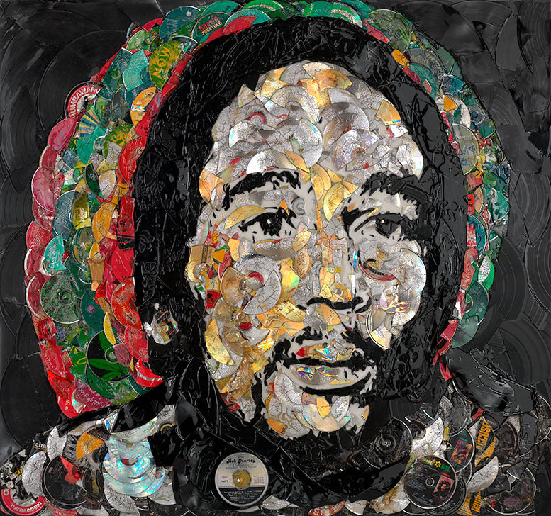 Lori Love's Record, Vinyl, and CD Mix Media of Bob Marley: